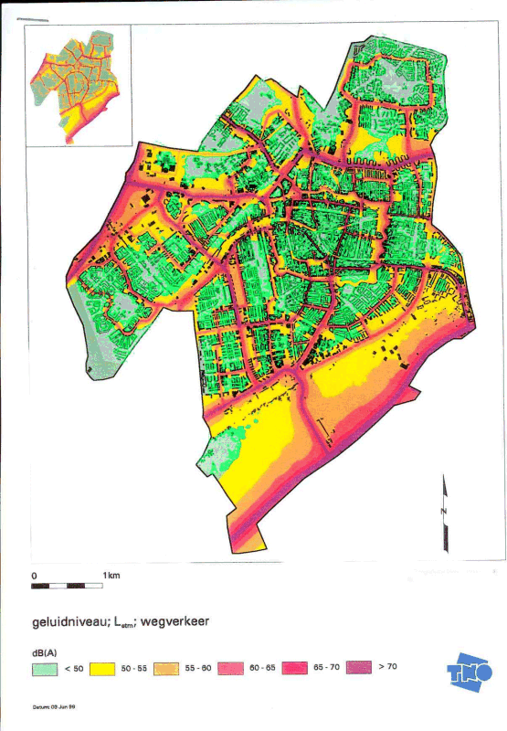 In this map the noise levels of road traffic are made visisble. Click in the centre to see a detail of the old city.